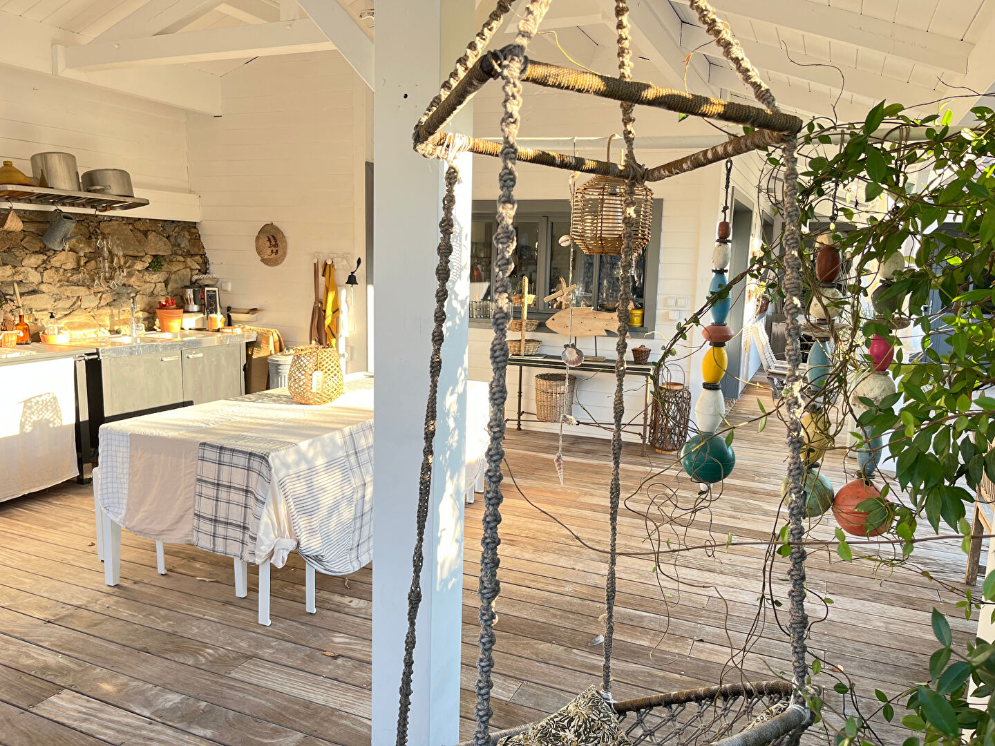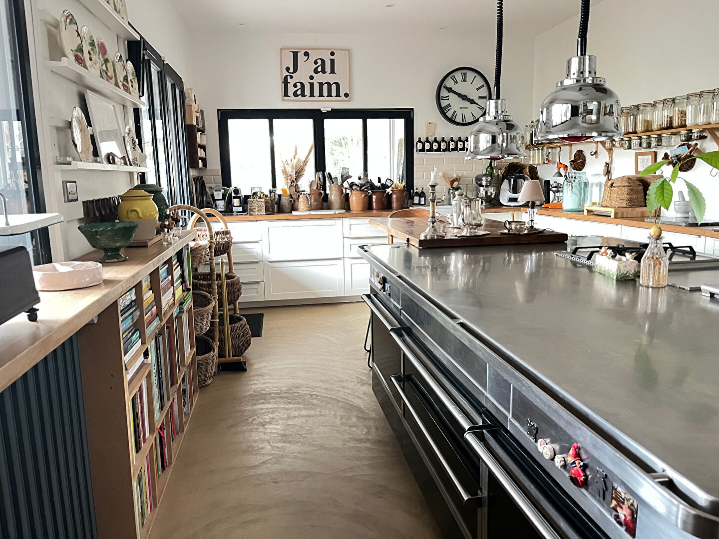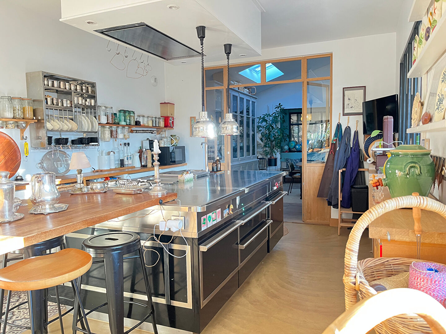 Cuisine professionnelle ouverte sur l’extérieur et prolongée par sa cuisine d’été sous préau. Séjour salon chaleureux avec cheminée. Suite parentale sur terrasse, 4 chambres, salle de bains, 2 salles d’eau, 4 wc. Deux entrées indépendantes, bureau. Cuisine et salon sur patio (maison d’amis). Piscine entourée d’un jardin clos, paysagé et arboré. Grande terrasse en bois exotique. Atelier, patio, stationnement. Possibilité de gîte , maison d’amis.