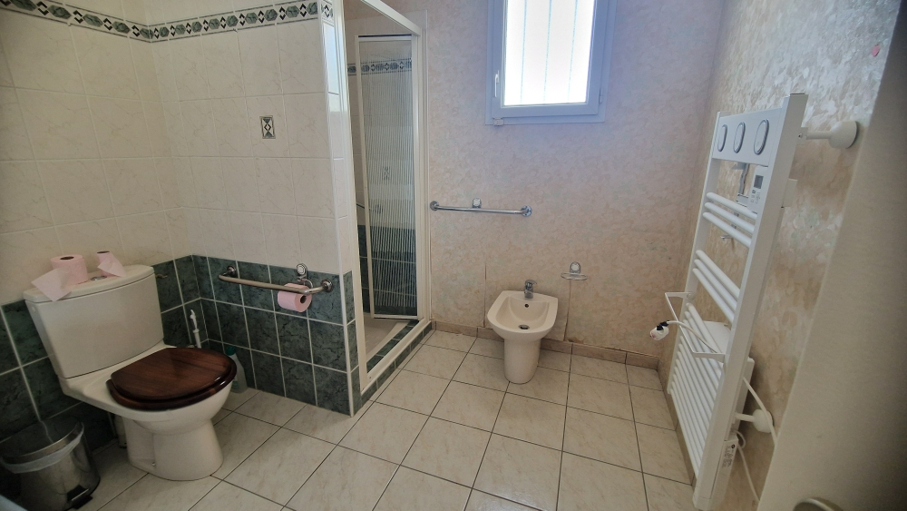 Agréable maison de plain-pied de 2000 offrant un salon/séjour donnant sur une véranda, une cuisine aménagée, trois chambres, deux SDE avec WC, un WC indépendant, un cellier.