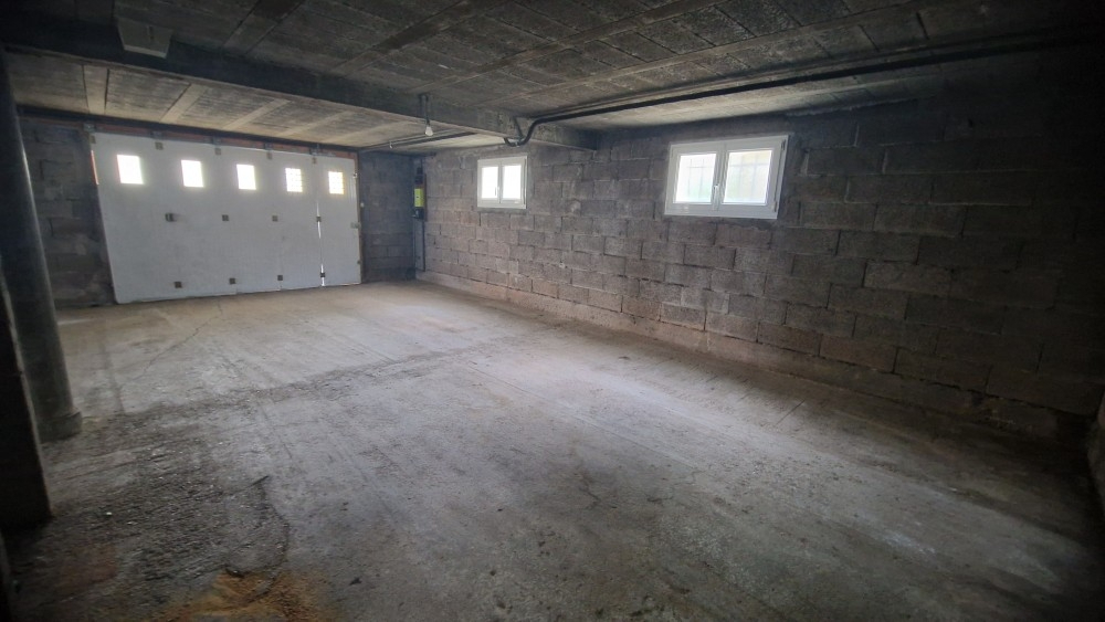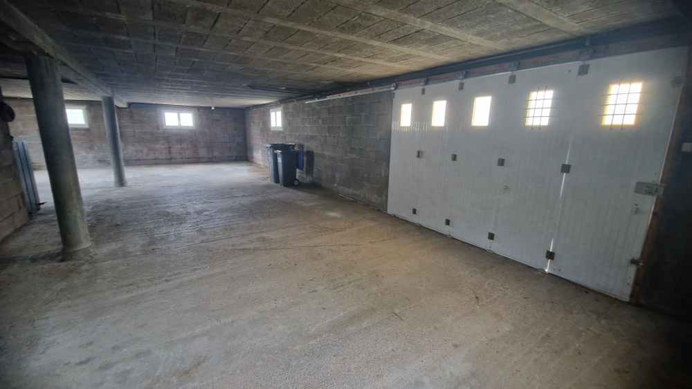 Sous-sol complet de 90 m² avec garage et possibilité d’aménagement.