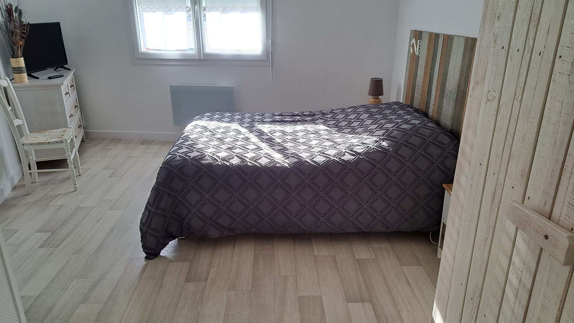 A L’ÉTAGE : UNE CHAMBRE, SALLE D’EAU AVEC WC.