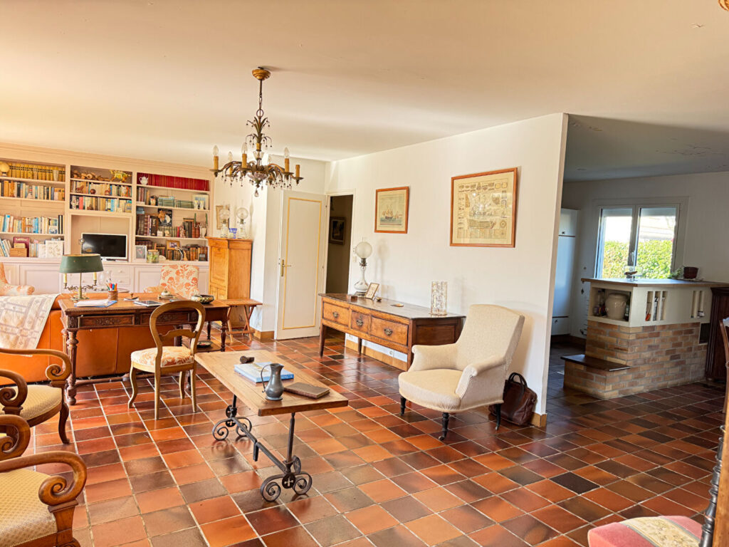 Exclusivité !! Les Sables d’Olonne, quartier des fosses rouges , très agréable maison de plain-pied de 108 m² hab. avec beau potentiel comprenant : entrée, séjour/salon avec cheminée, cuisine équipée avec coin repas, sde wc. Garage, terrasse.