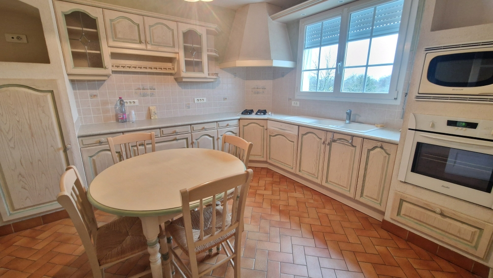 Maison d’habitation de 1977 offrant entrée, salon/séjour avec cheminée, cuisine aménagée, trois chambres, SDE, WC.
