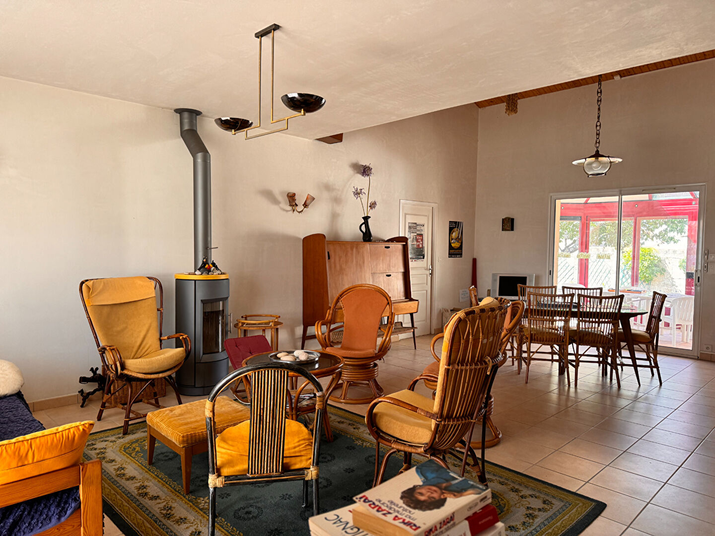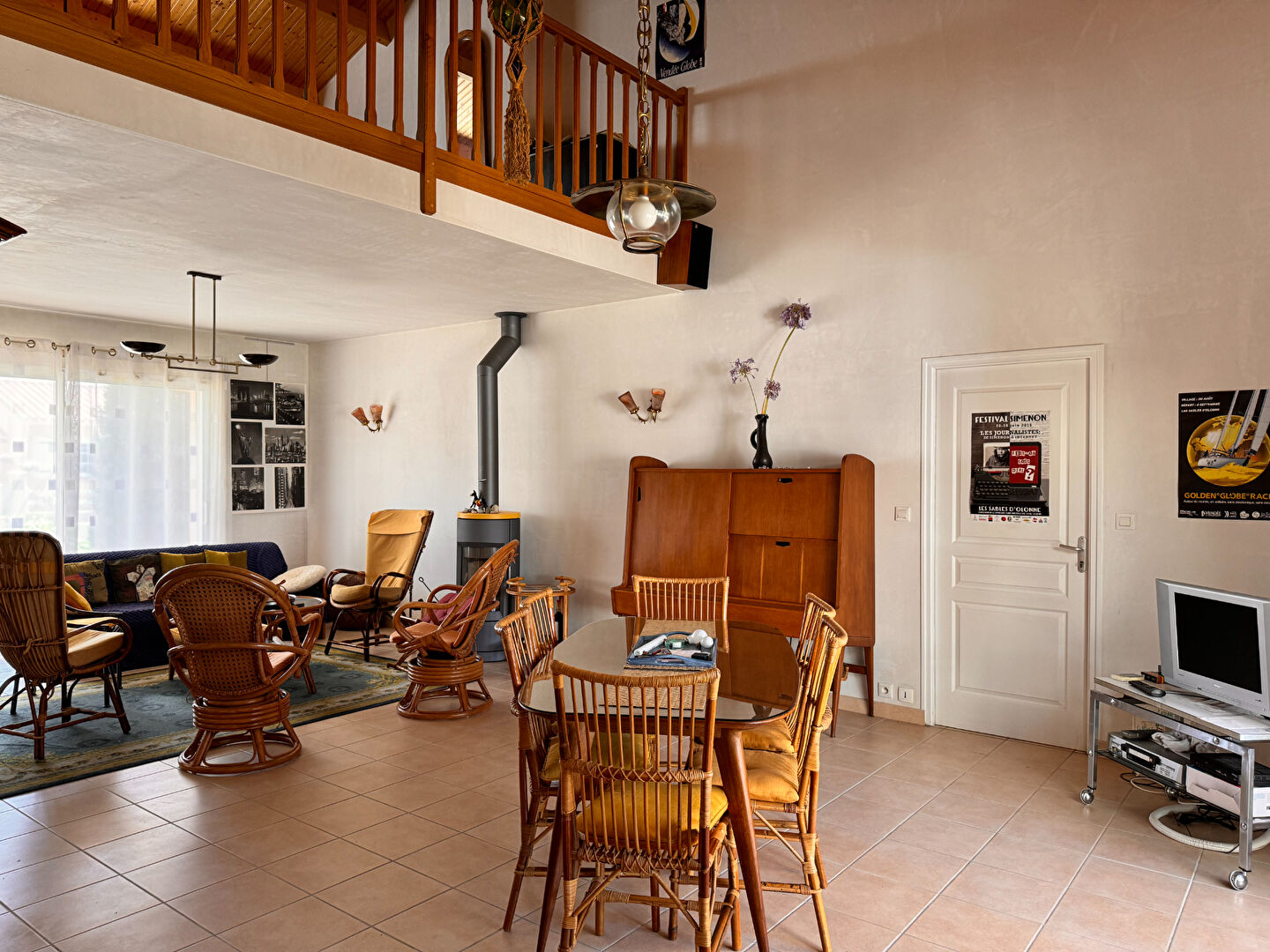 La Chaume, proche Quai, Très belle maison de 2004 pour une superficie de 148m² hab. comprenant entrée, séj/salon avec poêle à bois, cuisine équipée et aménagée, véranda sur jardin, 2 chambres dont une suite parentale avec dressing et sde, mezzanine avec plusieurs couchages, sde, wc. Grand garage avec faux grenier.